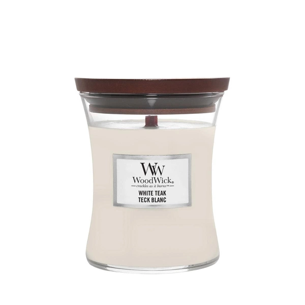 WOODWICK PlusWick średnia świeca w słoiku WHITE TEAK 275g