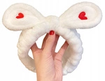 ECARLA opaska kosmetyczna do włosów z Kokardą i serduszkami 19,5x8cm Białą OPK11B