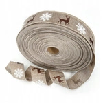 ECARLA taśma świąteczna wstążka 5cmx2m Beżowa taśma z białymi jelonkami KSN128